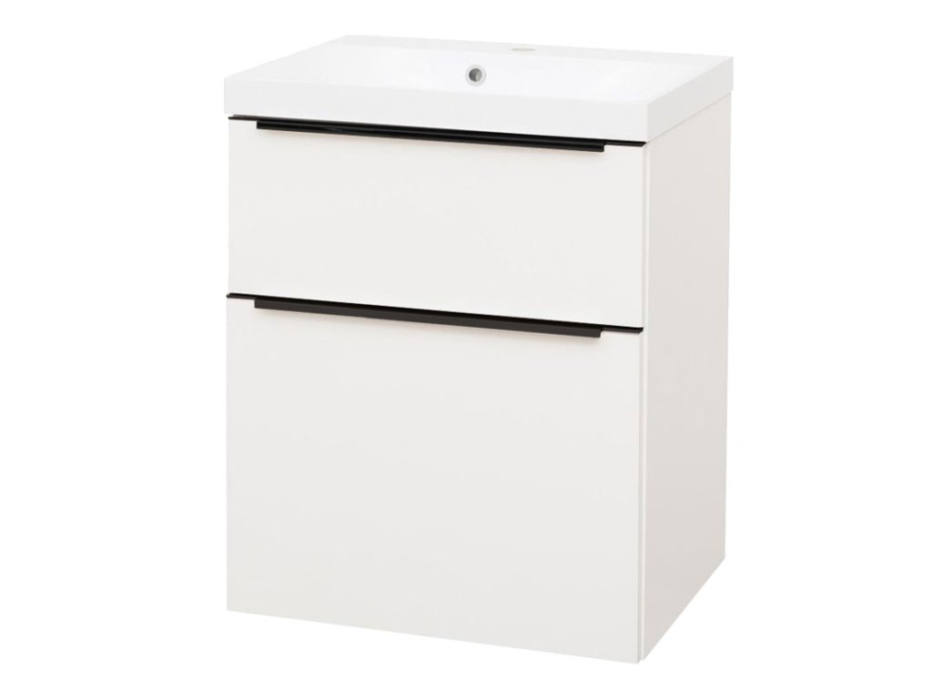 Mereo Mailo, koupelnová skříňka s umyvadlem z litého mramoru 61 cm, bílá, černé madlo