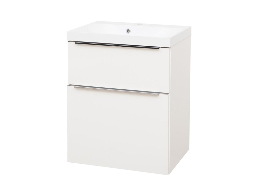 Mereo Mailo, koupelnová skříňka s umyvadlem z litého mramoru 61 cm, bílá, chrom madlo
