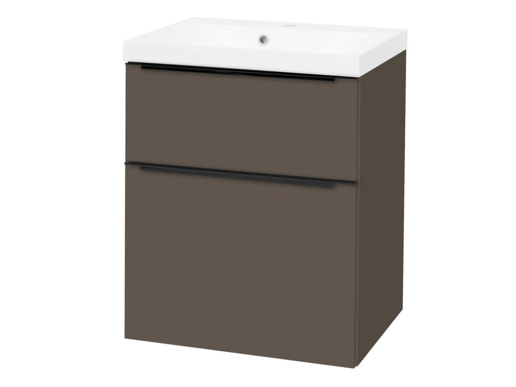 Mereo Mailo, koupelnová skříňka s umyvadlem z litého mramoru 61 cm, šedá láva, černé madlo