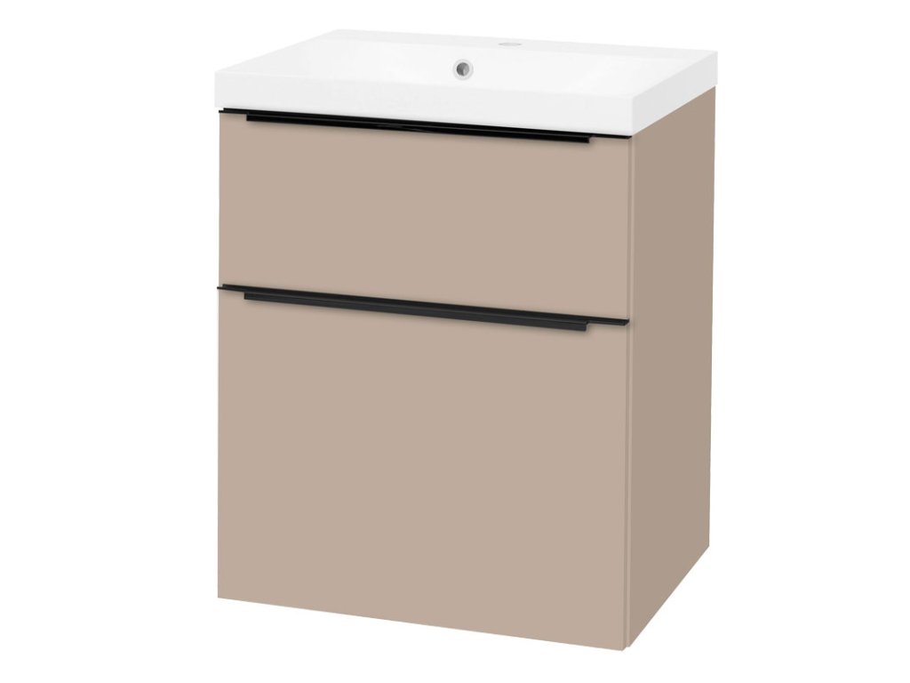 Mereo Mailo, koupelnová skříňka s umyvadlem z litého mramoru 61 cm, šedý kámen, černé madlo