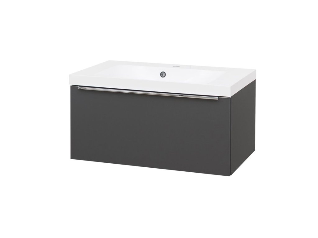 Mereo Mailo, koupelnová skříňka s umyvadlem z litého mramoru 81 cm, antracit, chrom madlo
