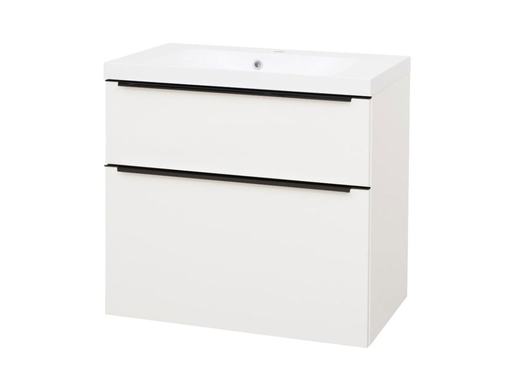 Mereo Mailo, koupelnová skříňka s umyvadlem z litého mramoru 81 cm, bílá,, černé madlo