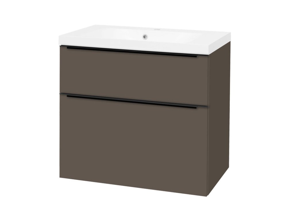 Mereo Mailo, koupelnová skříňka s umyvadlem z litého mramoru 81 cm, šedá láva, černé madlo