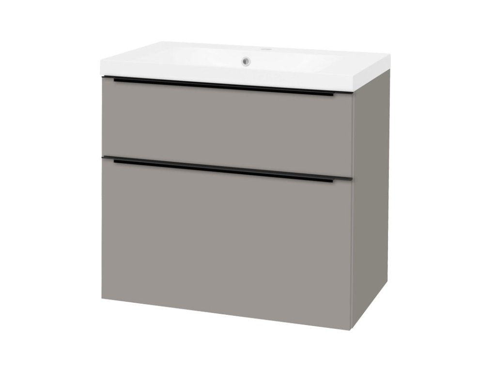 Mereo Mailo, koupelnová skříňka s umyvadlem z litého mramoru 81 cm, šedá mat, černé madlo