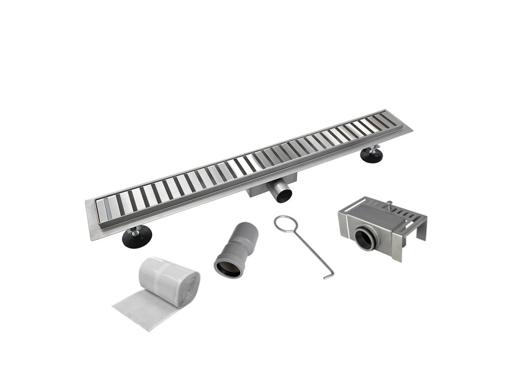 Odtokový žlab je dodáván včetně roštu STRIP, který se vyznačuje moderním designem a prořezanými pruhy.