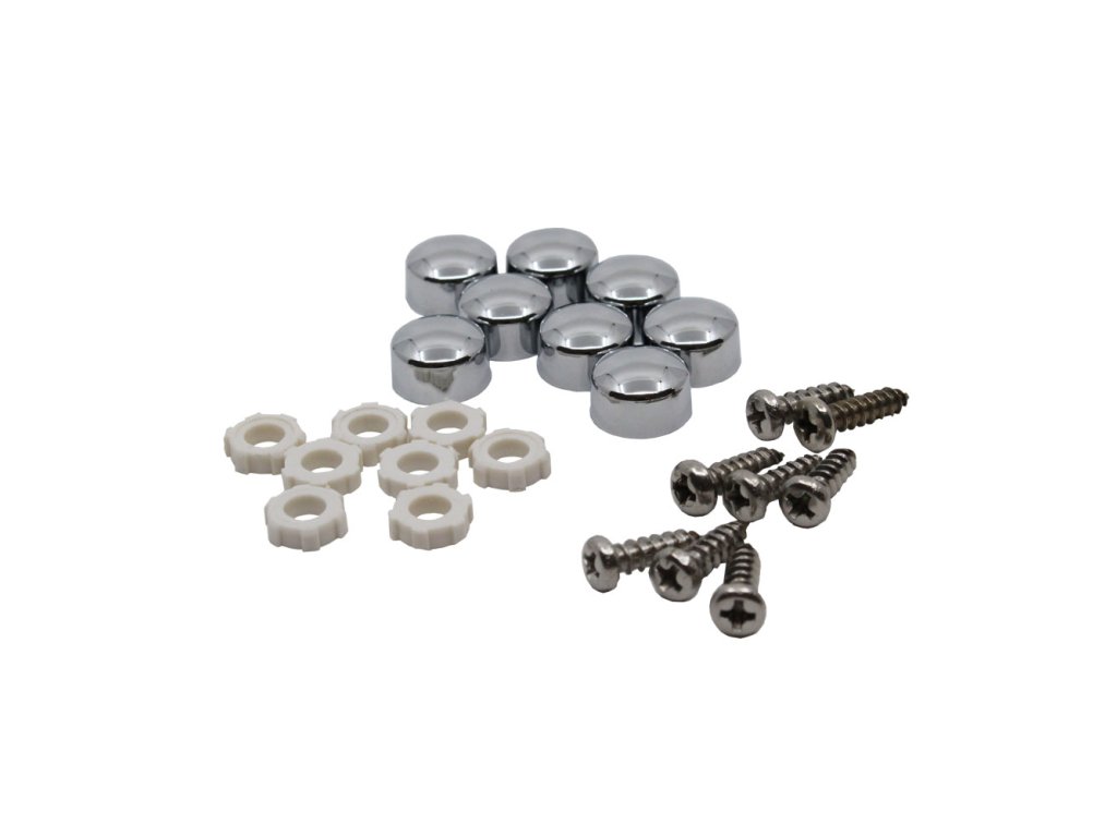 Sada plastových krytek a šroubů pro aretaci fixačního profilu pro kouty a dveře (8ks), chrom