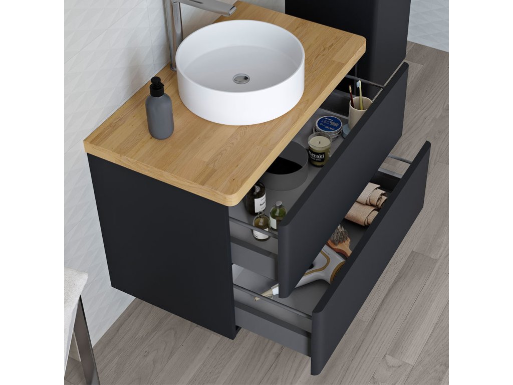 Koupelnová série Siena – elegance v každém detailuSérie Siena vyniká jemnými, čistými liniemi a elegantním designem. Celá kompozice vychází z ladně zaoblených hran koupelnových skříněk, které harmonicky doplňují umyvadla, masivní dubové desky, vysoké skříně i galerky.