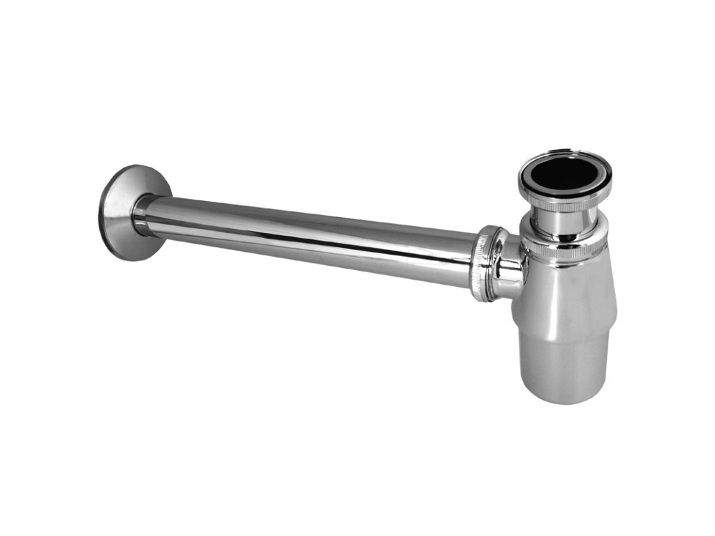 Celokovový chromovaný sifon s převlečenou maticí v kulatém designu.Vyroben z pochromované mosazi.
