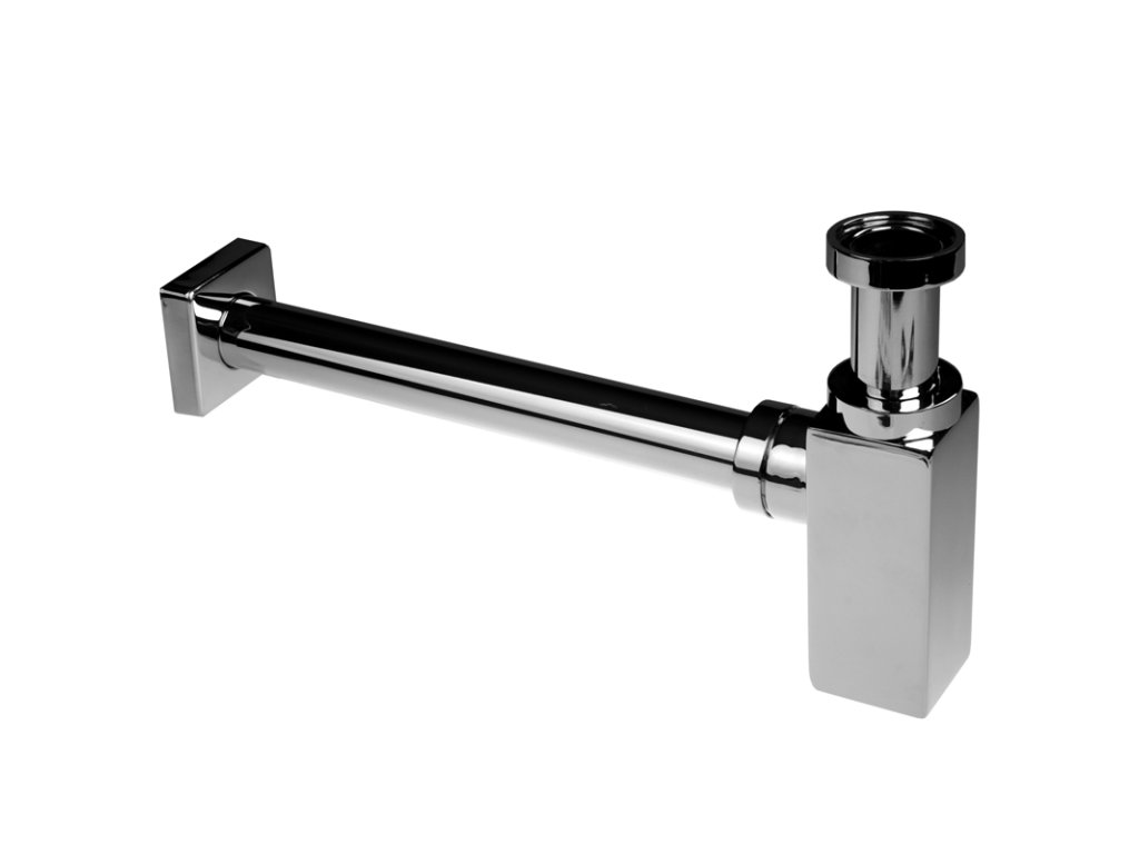 Celokovový chromovaný sifon s převlečenou maticí v hranatém designu.Vyroben z pochromované mosazi.