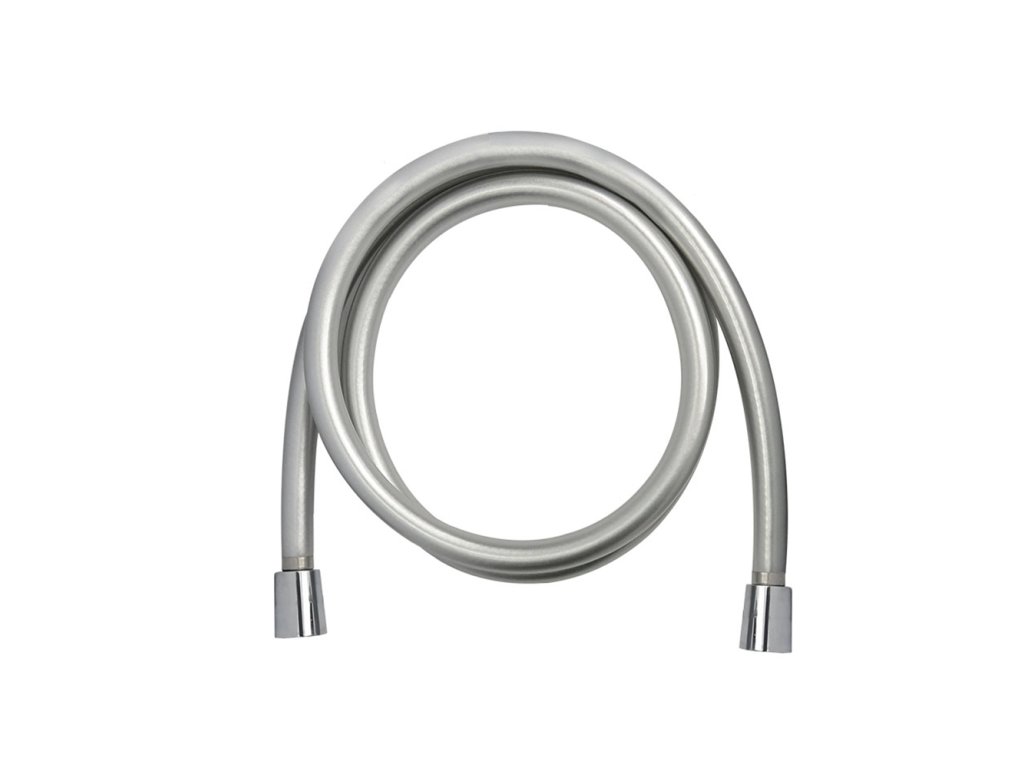 Sprchová hadice šedostříbrná v délce 120 cm. Hadice se montuje mezi baterii a sprchovou hlavici.Plastový potah zabraňuje poškrábání vany.