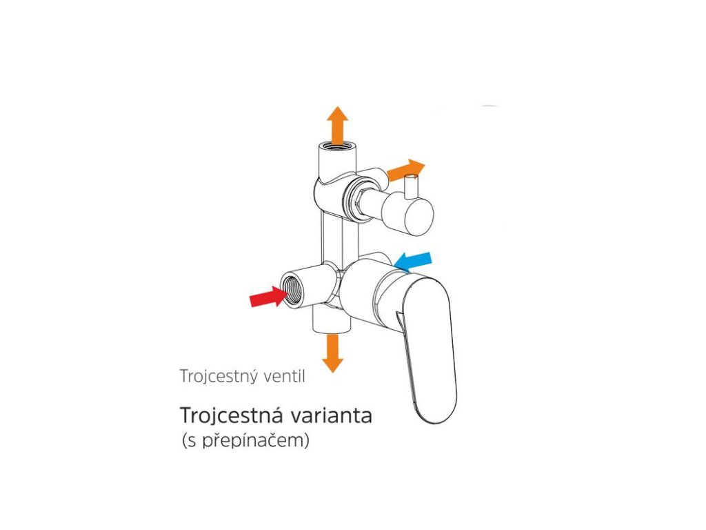 Tato sprchová podomítková baterie patří do řady vodovodních baterií Sonáta, která se vyznačuje robustním vzhledem a tichým chodem. Velmi kvalitní povrchová úprava a spolehlivost je samozřejmostí.Trojcestná varianta (s přepínačem 3 polohy) je určena do sprchových koutů s ruční sprchou, hlavovou sprchou a dalším zdrojem tekoucí vody, např. vodopádem.