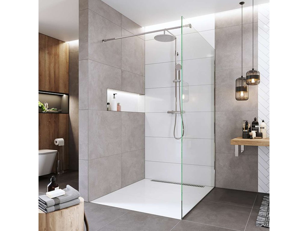 Sprchové stěny WALK IN jsou jediné, které se vám opravdu přizpůsobí. Sestavte si svůj sprchovací prostor na míru. Sprchový kout typu WALK IN si můžete poskládat v několika možných kombinacích. Stabilitu bezpečnostní skla zajišťuje elegantní kovová vzpěra a v případě montáže na zeď i boční stavitelný profil, které nenarušují designovou čistotu celého koutu, nejedná o hermeticky uzavřený výrobek.