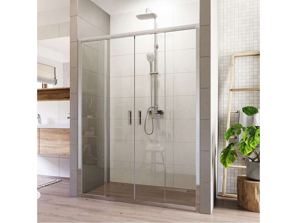 Mereo Sprchové dveře, Lima, čtyřdílné, zasunovací, 150x190 cm, chrom ALU, sklo Čiré
