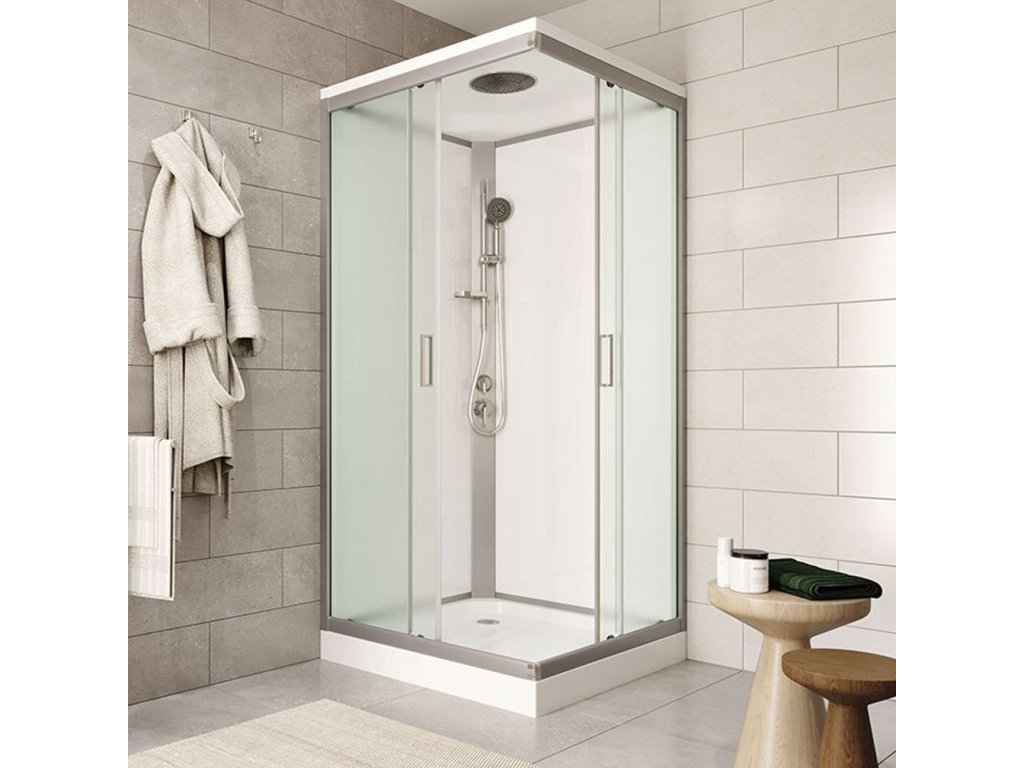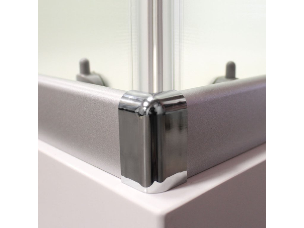 Sprchový box vnáší do ekonomické třídy nový rozměr kvality. Sklo je v designu Point, satin ALU profil. Tloušťka bezpečnostního skla je 5/4 mm. Sklo je dokonale utěsněno silikonovými lištami, nejedná se však o hermeticky uzavřený výrobek. Sprchový kout je osazen posuvnými dveřmi, které mají kvalitní dvojkolečkové horní pojezdy s možností perfektního seřízení. Dorazy zajišťují minimální nárazy při otevírání a zavírání sprchového koutu.Spodní pojezdy umožňují odklopení posuvné části sprchového koutu a vyčištění běžně nedostupných míst. Těsnost mezi pevnou a posuvnou částí je zajištěna stíracími silikonovými lištami na obou dvou částech. K připojení boxu do vodovodního řádu je možné použít nerezové opletové hadičky, které naleznete také v naší nabídce (součástí balení jsou nerezové připojovací hadice 1/2" o délce 60 cm).