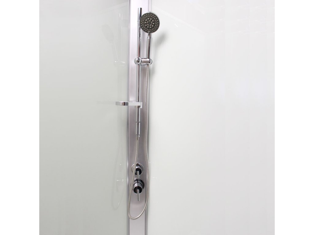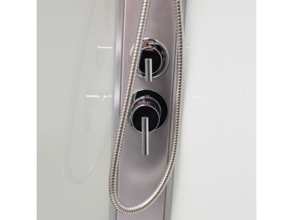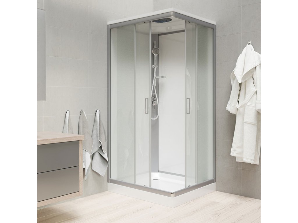 Sprchový box vnáší do ekonomické třídy nový rozměr kvality. Sklo je v designu Point, satin ALU profil. Tloušťka bezpečnostního skla je 5/4 mm. Sklo je dokonale utěsněno silikonovými lištami, nejedná se však o hermeticky uzavřený výrobek. Sprchový kout je osazen posuvnými dveřmi, které mají kvalitní dvojkolečkové horní pojezdy s možností perfektního seřízení. Dorazy zajišťují minimální nárazy při otevírání a zavírání sprchového koutu.Spodní pojezdy umožňují odklopení posuvné části sprchového koutu a vyčištění běžně nedostupných míst. Těsnost mezi pevnou a posuvnou částí je zajištěna stíracími silikonovými lištami na obou dvou částech. K připojení boxu do vodovodního řádu je možné použít nerezové opletové hadičky, které naleznete také v naší nabídce (součástí balení jsou nerezové připojovací hadice 1/2" o délce 60 cm).