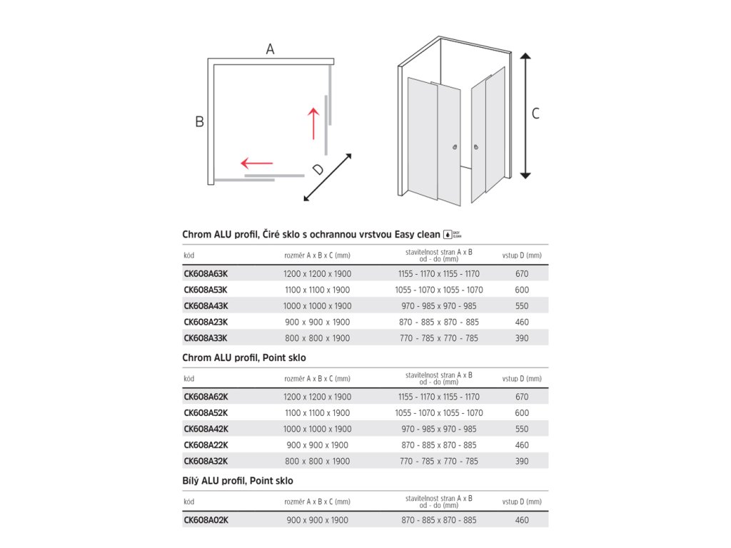 Lima je řada sprchových koutů Mereo, která navodí pocit čistého designu v každé moderní koupelně. Rovné hladké plochy, čisté linie a ostré hrany profilů umocňují pocit exkluzivity. Kvalitní skleněné výplně s bezpečnostním sklem. Tento kout nabízíme v provedení s čirým sklem.Snadné zavření a těsnost zajišťují stírací a silikonové lišty, opatřené na vstupní části magnetem, nejedná se však o hermeticky uzavřený výrobek.