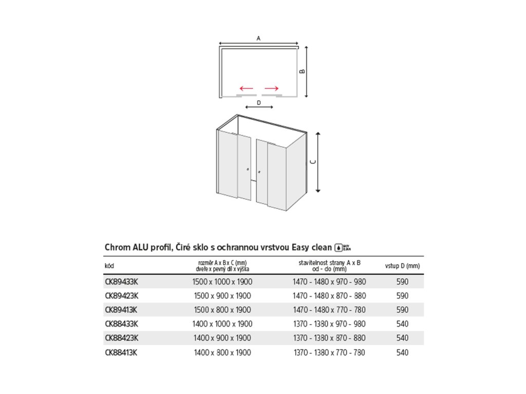 Lima je řada sprchových koutů Mereo, která navodí pocit čistého designu v každé moderní koupelně. Rovné hladké plochy, čisté linie a ostré hrany profilů umocňují pocit exkluzivity. Kvalitní skleněné výplně s bezpečnostním sklem. Tento kout nabízíme v provedení s čirým sklem.Snadné zavření a těsnost zajišťují stírací a silikonové lišty, opatřené na vstupní části magnetem, nejedná se však o hermeticky uzavřený výrobek.