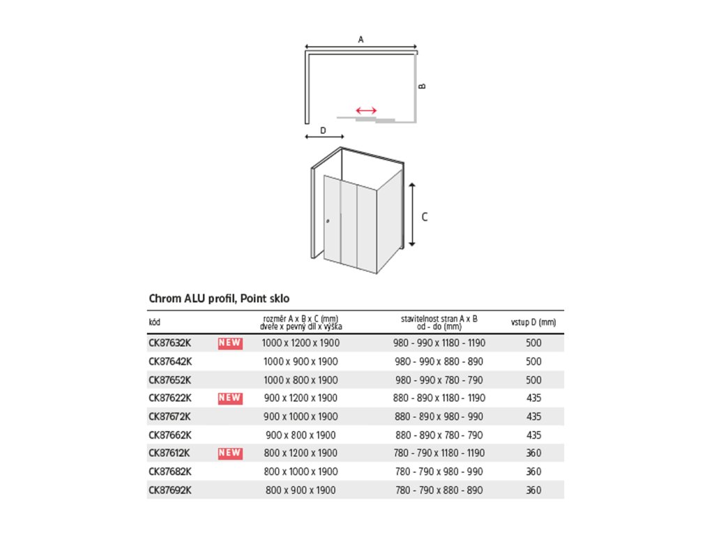 Lima je řada sprchových koutů Mereo, která navodí pocit čistého designu v každé moderní koupelně. Rovné hladké plochy, čisté linie a ostré hrany profilů umocňují pocit exkluzivity. Kvalitní skleněné výplně s bezpečnostním sklem. Tento kout nabízíme v neprůhledném provedení se sklem Point, které navodí lepší pocit intimity při sprchování.Snadné zavření a těsnost zajišťují stírací a silikonové lišty, opatřené na vstupní části magnetem, nejedná se však o hermeticky uzavřený výrobek.