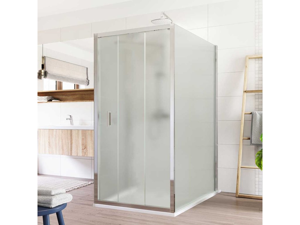 Mereo Sprchový kout, Lima, obdélník do prostoru U, trojdílné, zasun., 90x100x90 cm, chrom ALU, sklo Point