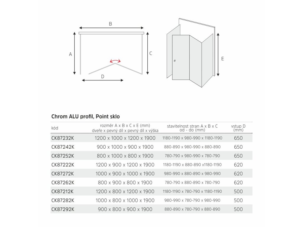 Mereo Sprchový kout, Lima, obdélník do prostoru U, zalamovací, 120x90x120 cm, chrom ALU, sklo Point