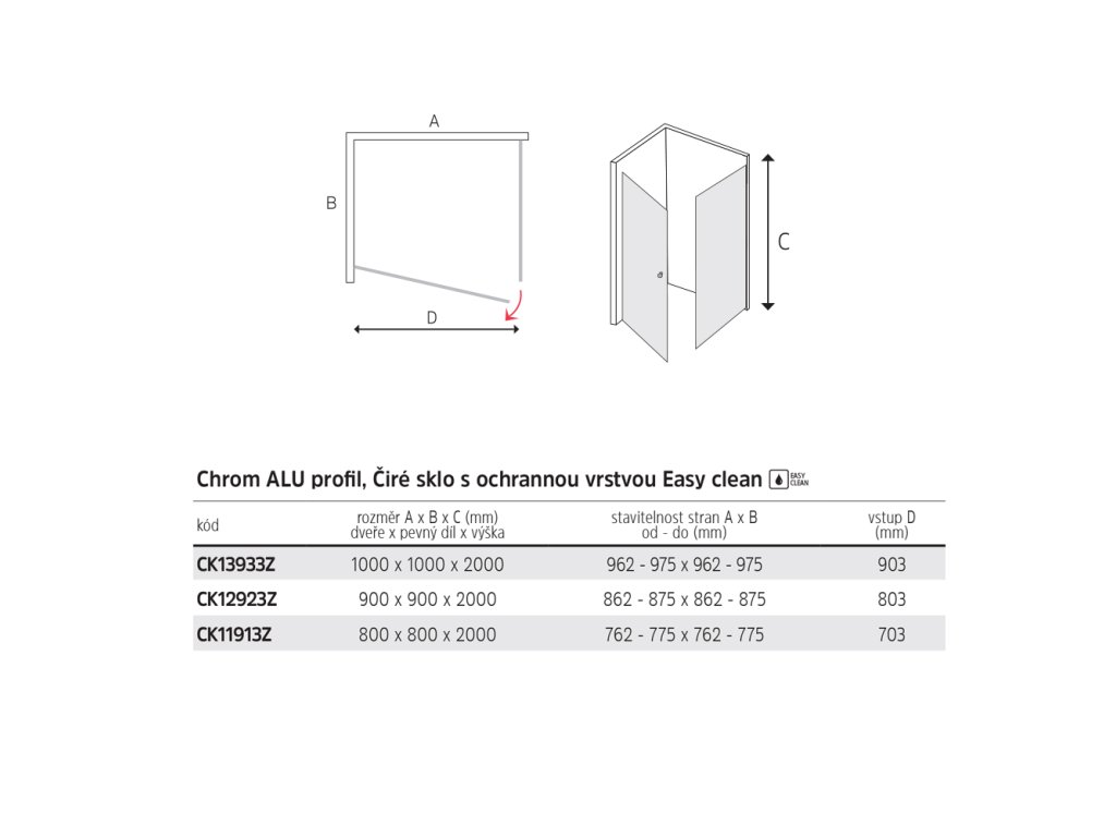 Mereo Sprchový kout, Novea, čtverec, pivotový, 100x100 cm, chrom ALU, sklo Čiré, dveře L/P a pevný díl