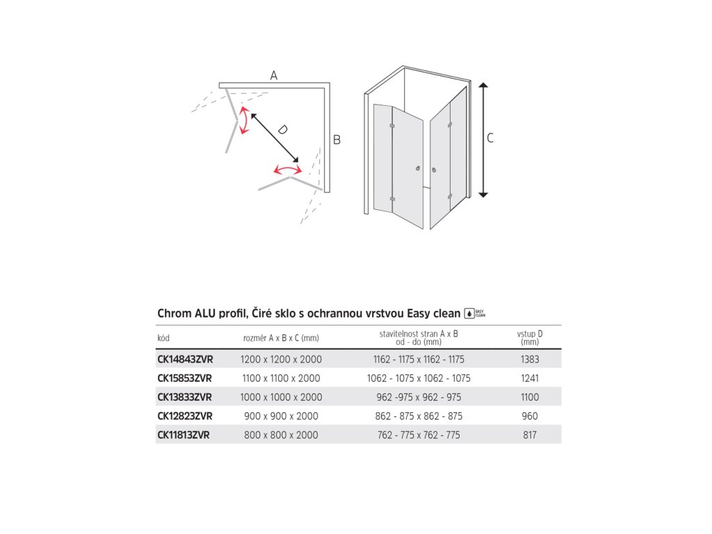 Mereo Sprchový kout, Novea, čtverec, zalamovací, 80x80 cm, chrom ALU, sklo Čiré