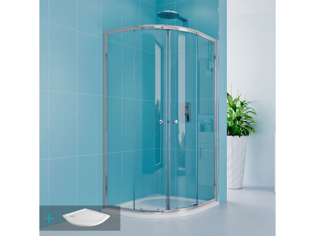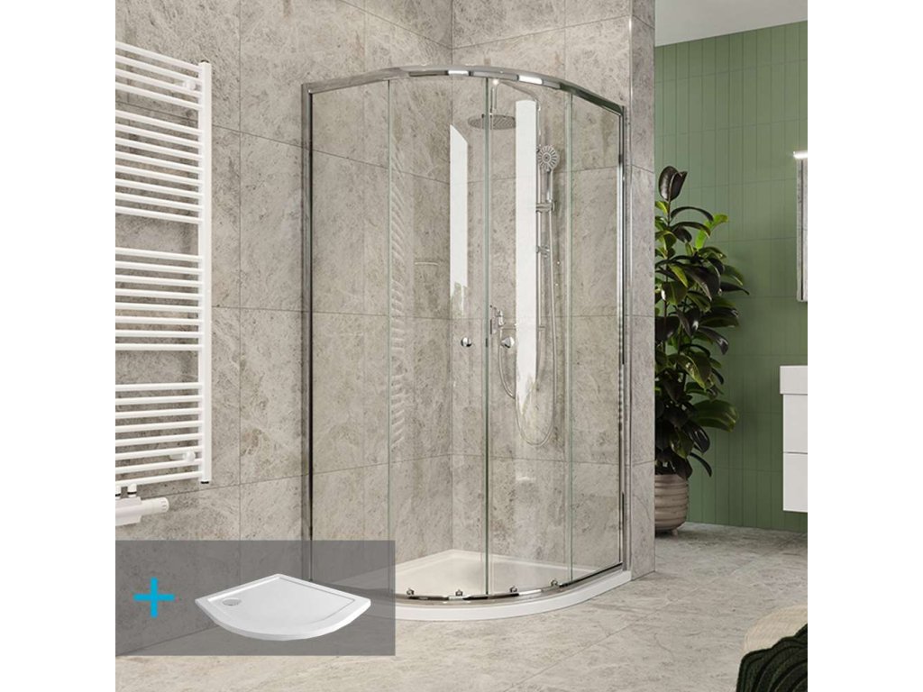 Mereo Sprchový set z Kory Lite, čtvrtkruh, 90 cm, chrom ALU, sklo Čiré a nízké SMC vaničky