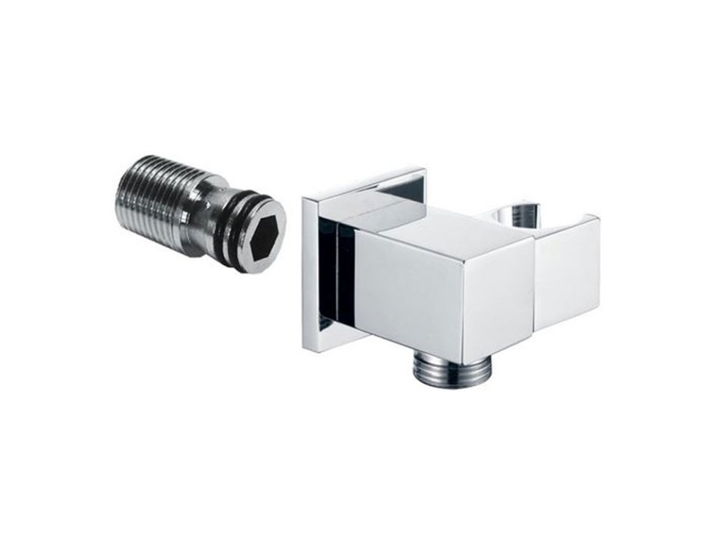 Mereo Stěnový vývod s držákem na sprchu, hranatý, pochromovaná mosaz