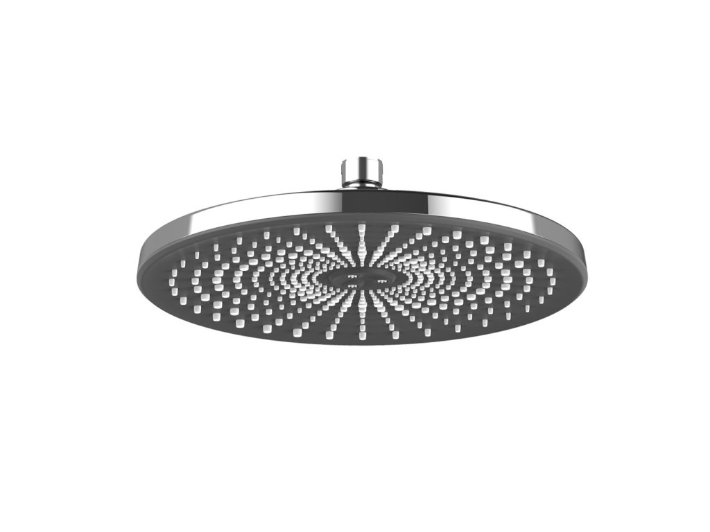 Talířová hlavová sprcha o rozměru ø 250 mm se vyznačuje moderním designem, vysokou variabilitou a především umožňuje téměř libovolnou kombinaci s příslušenstvím sprchového programu. Má velmi jemný proud vody. Součástí je také výkyvný kloub.Funkce sprchy: