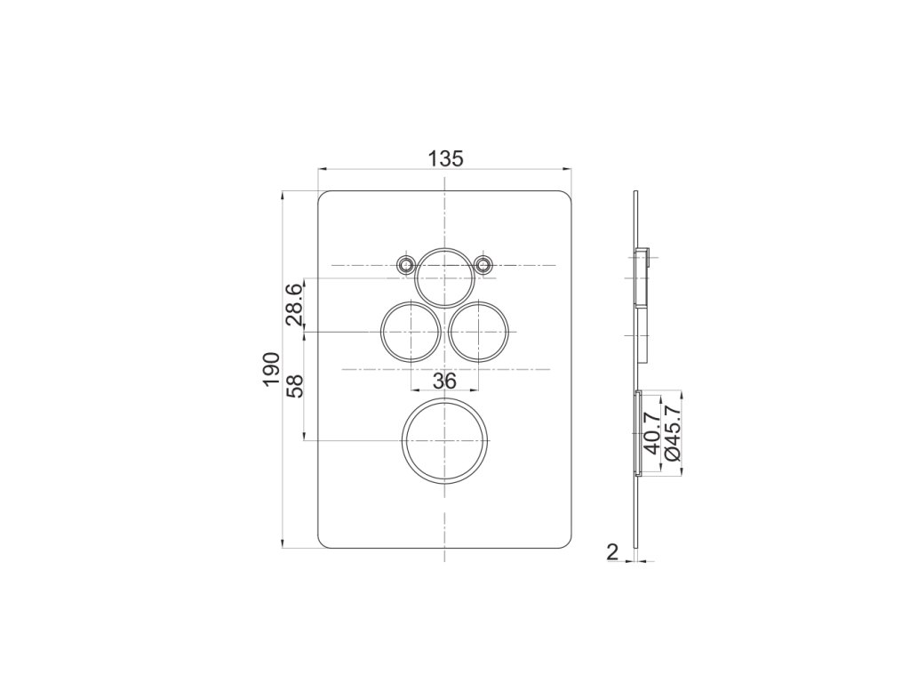Mereo Termostatická podomítková tlačítková baterie - 3-cestná - hranatý kryt