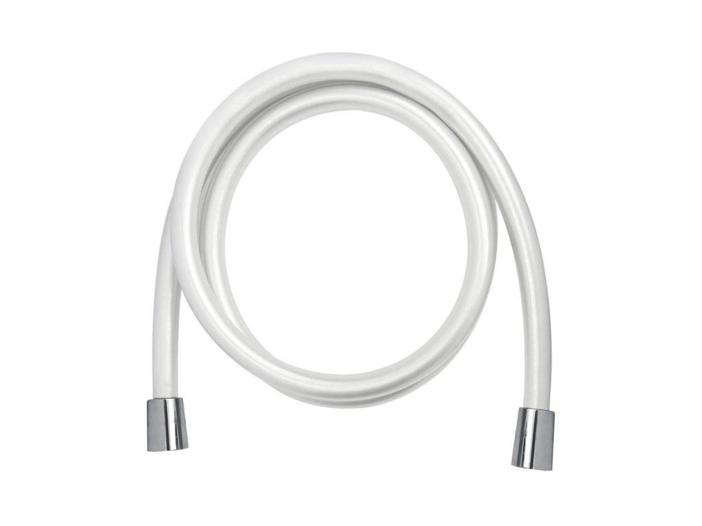 Sprchová hadice bílá, lesklá, o délce 150 cm. Hadice se montuje mezi baterii a sprchovou hlavici. Plastový potah zabraňuje poškrábání vany.