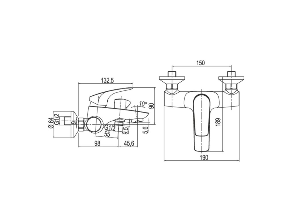 Mereo Vanová nástěnná baterie, Eve, bez příslušenství, 150 mm, chrom