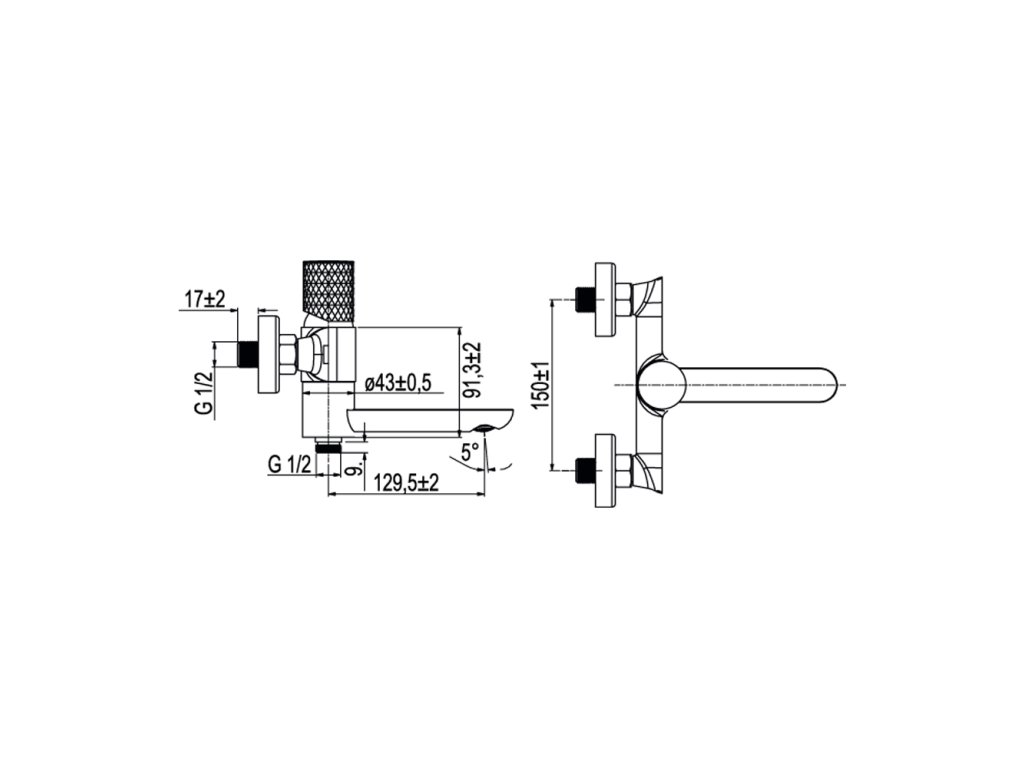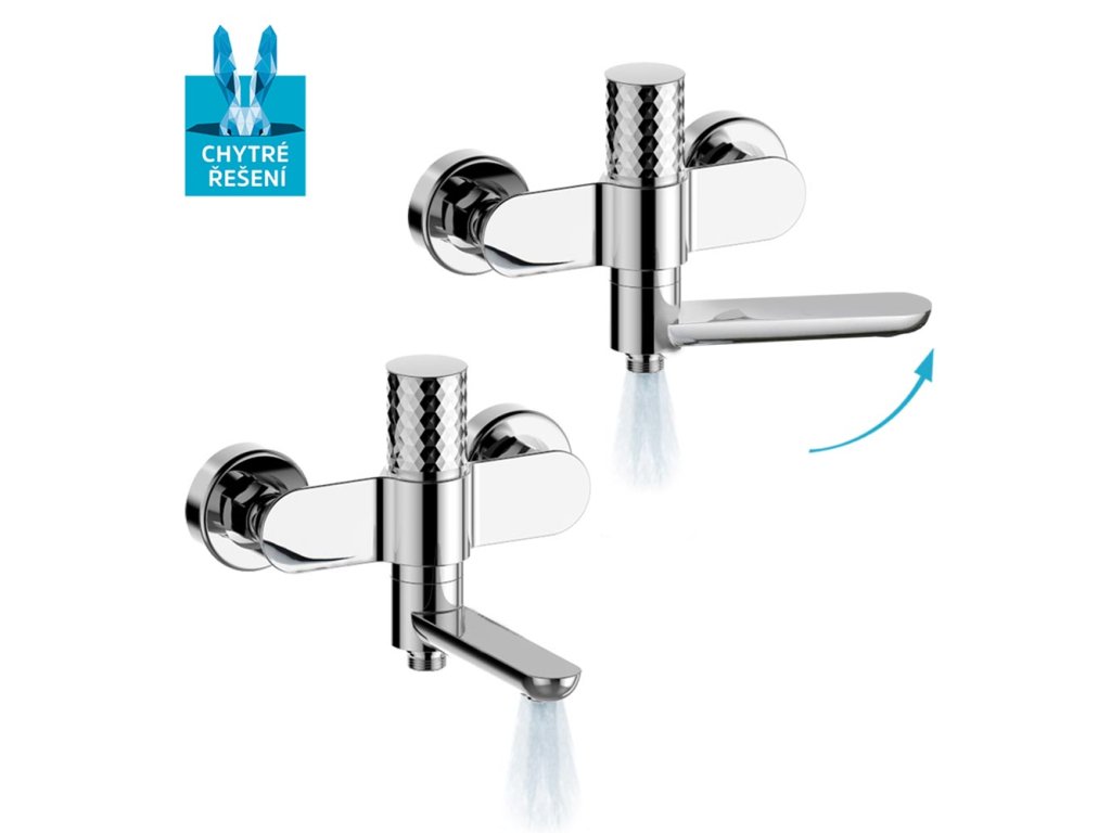 Mereo Vanová nástěnná baterie se sklopným ramínkem diamant, Viana, bez příslušenství, 150 mm, chrom