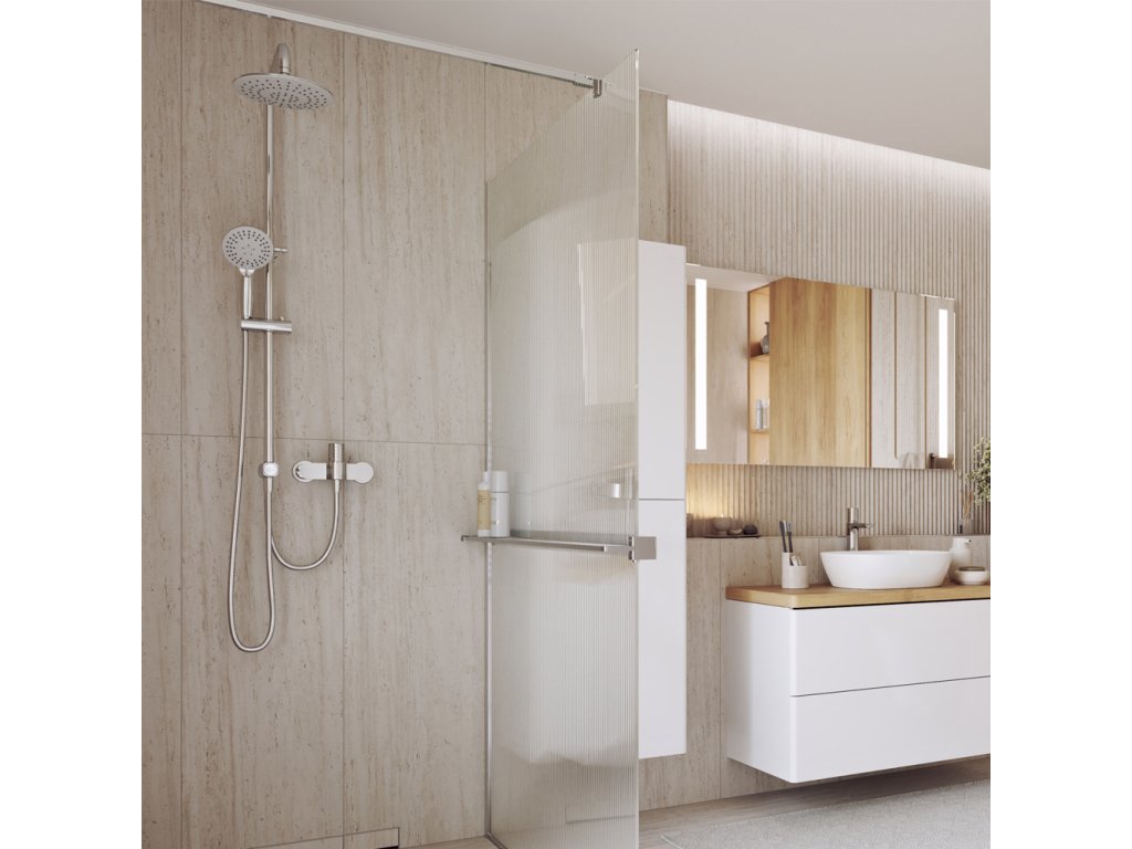 Elegantní způsob přepínání mezi výtokem z ramínka a ruční sprchou. Přepnutí funkcí se realizuje otočením ramínka o 90° (otočení ramínka ke stěně).Série Viana zaujme na první pohled robustní konstrukcí a svým prvotřídním plochým designem s ostrými hranami. Kvalitní materiály zaručují spolehlivost a dlouhou životnost těchto baterií. Nástěnné baterie dodáváme s roztečí 150 mm. Díky integrovanému perlátoru, který nikde nevyčnívá, jsou zachovány čisté linie.
