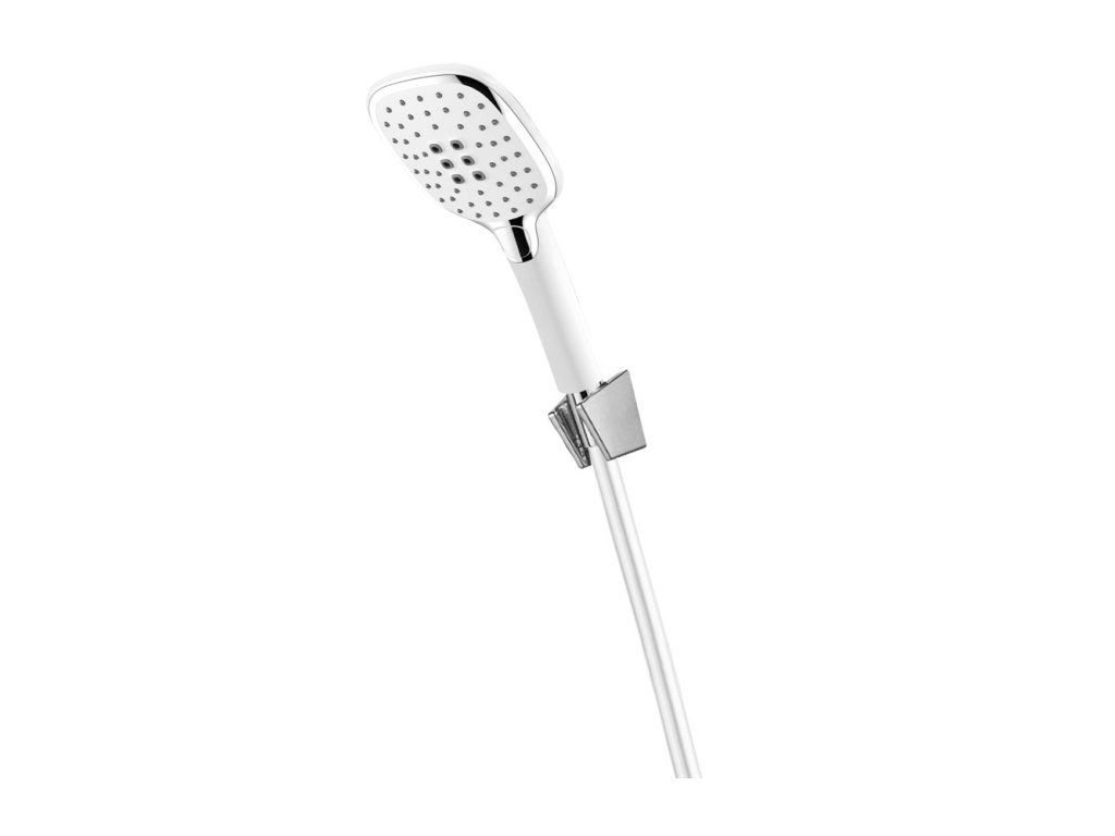 Vanový set se vyznačuje moderním designem, vysokou variabilitou a především umožňuje téměř libovolnou kombinaci s příslušenstvím sprchového programu. Součástí vanového setu je jednopolohová ruční sprcha, držák a bílá lesklá sprchová hadice s platovým potahem o délce 150 cm se systémem zabraňujícím překroucení.- fast clean: systém snadného očištění od usazenin vodního kamene