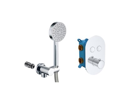 Mereo Vanový set s termostatickou podomítkovou tlačítkovou baterií - 2-cestná - oválný kryt