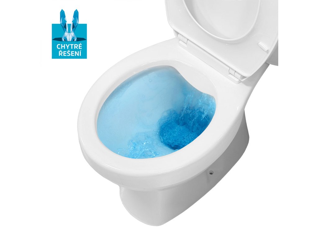Díky novému tvaru mísy odpadá složité čištění splachovacího žlábku pod okrajem mísy, který je používaný na klasických klozetech, a kde by se mohly hromadit bakterie, špína a usazeniny.