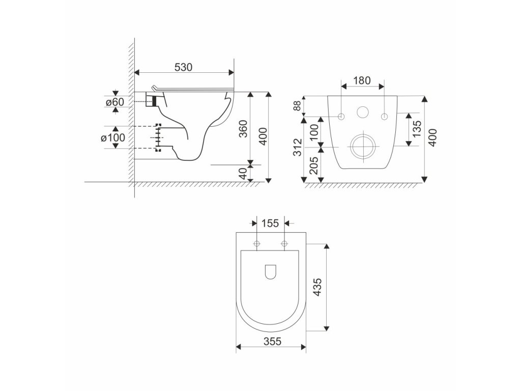 • Vhodné pro instalaci WC s osovou vzdáleností 18, nebo 23 cm