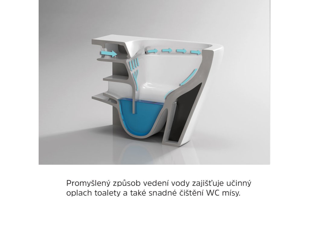 Rimless je inovativní způsob oplachu WC klozetu. Promyšlený způsob vedení vody zajišťuje účinný oplach toalety a také snadné čištění WC mísy.Díky novému tvaru mísy odpadá složité čištění splachovacího žlábku pod okrajem mísy, který je používaný na klasických klozetech, a kde by se mohly hromadit bakterie, špína a usazeniny.