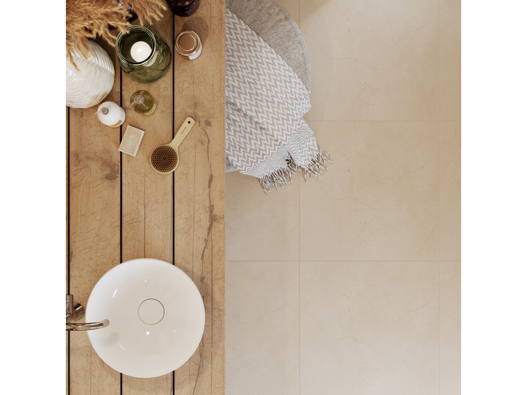 Povrch obkládaček vznikl harmonickým spojením jemného léty prověřeného mramorování s přednostmi novodobých postupů. S působivými výsledky: Díky moderním technologiím chráníme přírodu. Decentní mramorovaný design v béžových tónech má kombinace nerektifikovaných obkládaček 30 x 60 a 20 x 40 cm s dlaždicí formátu 60 x 60 cm. Květinové vzory na dekoracích 30 x 60 cm v jemných modrofialových barvách s využitím technologie DryFix, dodávají dekorované obkládačce strukturu a vytváří osobitý kontrast. K dispozici je řezaná (5 x 5 cm) i falešná mozaika 2,5 x 2,5 cm ve formátu 20 x 40 cm. Rektifikované dlaždice 60 x 60 cm ve stejném designu doplněné o schodovku a sokl zajistí řešení bez limitů.
