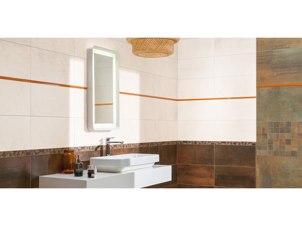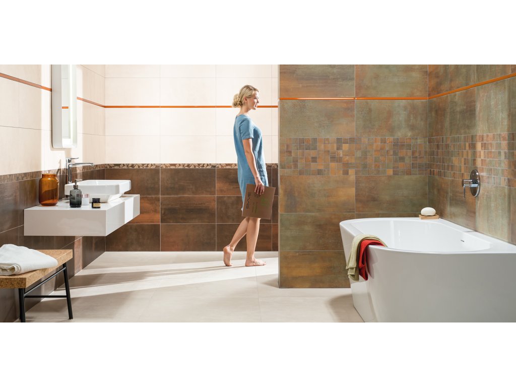 Rektifikované obkládačky Rush o rozměrech 30 x 60 cm dokonale imitují kovový povrch. Nabídka šesti originálních barev umožňuje vzájemnou kombinaci tmavších, výraznějších odstínů společně s velmi jemnými světlými odstíny. Obkládačky Rush mohou být kombinovány s listelami 60 x 4,8 cm s květinovým ornamentem nebo s abstraktní listelou 60 x 2 cm. Jednoduchý kontrast úspěšně „narušuje“ řezaná mozaika 5 x 5 cm dodávaná na lepenci 30 x 30 cm. Obklady této série vykazují velké odstínové odchylky (V3), nepravidelnost designu je zcela originální.
