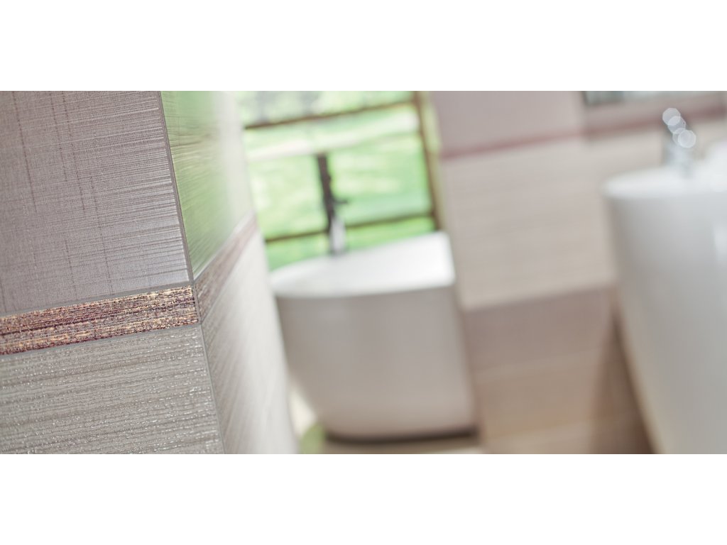 Textile je zhmotněním tradičního pojetí koupelny, ale i přesto dokáže koupelna oblečená do jemného květinového dekoru udržet krok s moderními trendy. Základní obkládačky 20 x 40 cm v harmonických přírodních odstínech se díky neutrální barevnosti vzájemně doplňují, originální povrch kopíruje strukturu hrubší tkané textilie. Série nabízí dvě varianty dekorací. První pro zákazníky dávající přednost klasickému, útulnému stylu a druhou pro příznivce elegantních koupelen s důrazem na zajímavý detail povrchu.