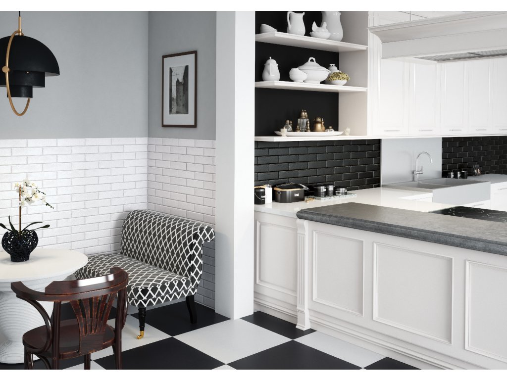 Dlaždice, dostupné v klasické černé a bílé, a také nadčasové šedé, zaujmou saténovou povrchovou úpravou a nepravidelnými hranami.
