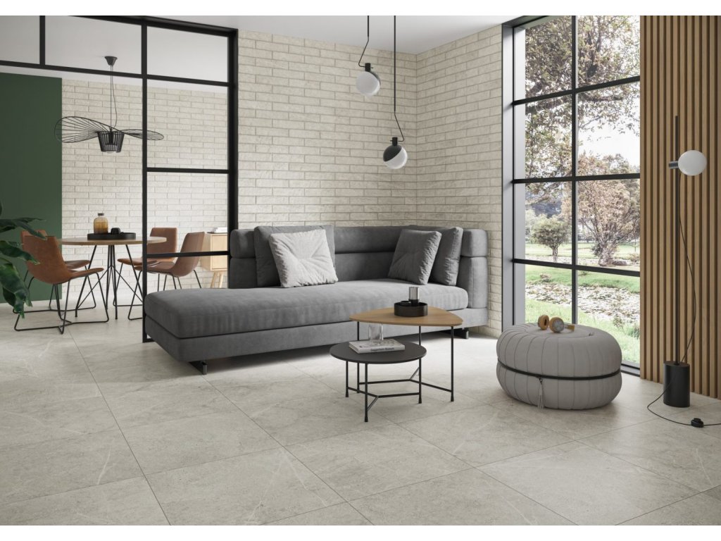 Díky obkladům Cerros bude vybudování sladěného a harmonického prostoru v interiéru i v exteriéru opravdovým potěšením. Stěna postavená z cihliček formátu 7,4 x 30 cm inspirovaných kamenem bude dokonale ladit se základními obklady ze stejné kolekce ve formátu 60 x 60 cm.