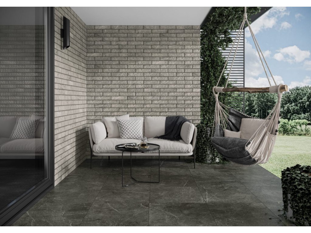 Díky obkladům Cerros bude vybudování sladěného a harmonického prostoru v interiéru i v exteriéru opravdovým potěšením. Stěna postavená z cihliček formátu 7,4 x 30 cm inspirovaných kamenem bude dokonale ladit se základními obklady ze stejné kolekce ve formátu 60 x 60 cm.