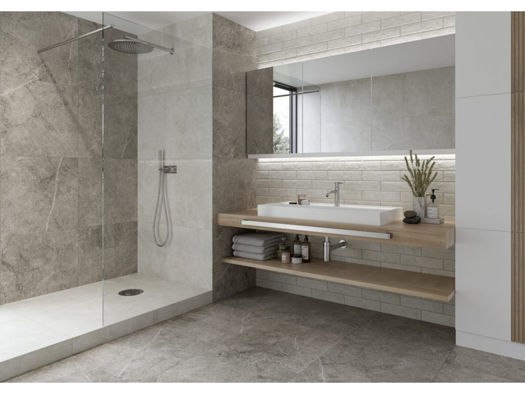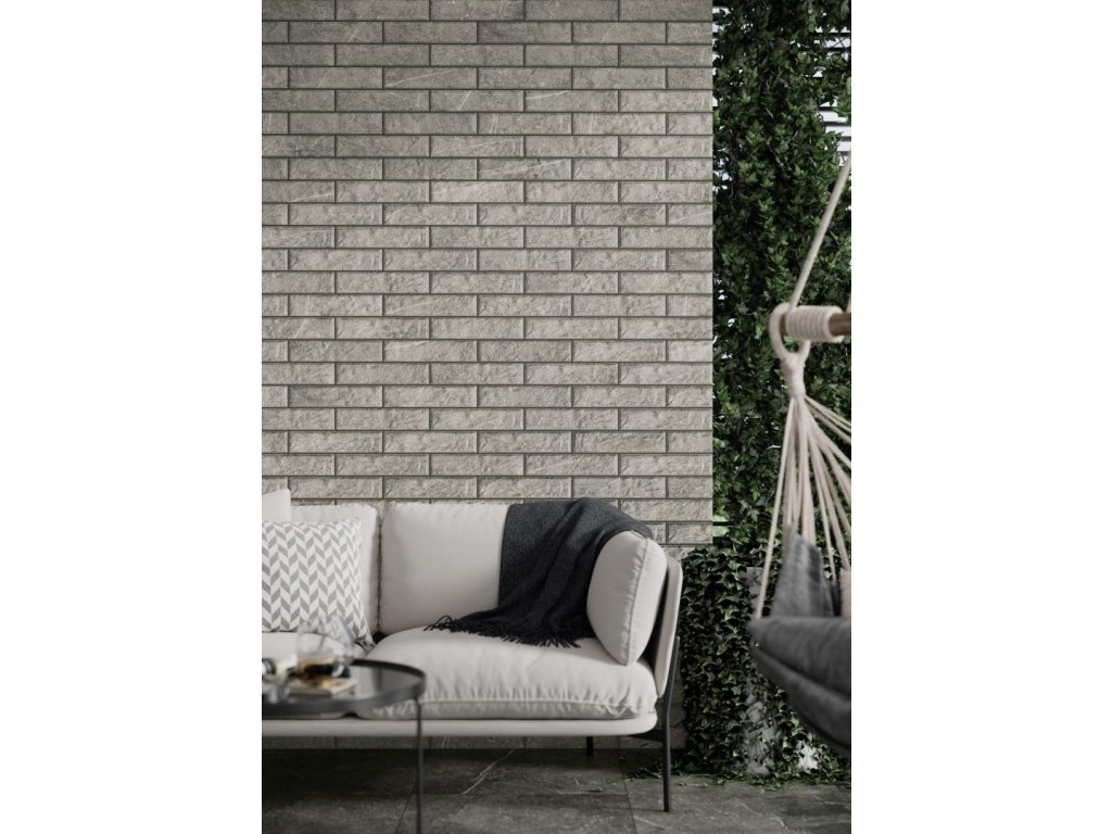 Díky obkladům Cerros bude vybudování sladěného a harmonického prostoru v interiéru i v exteriéru opravdovým potěšením. Stěna postavená z cihliček formátu 7,4 x 30 cm inspirovaných kamenem bude dokonale ladit se základními obklady ze stejné kolekce ve formátu 60 x 60 cm.