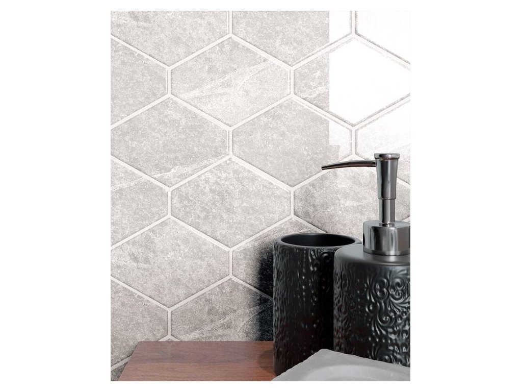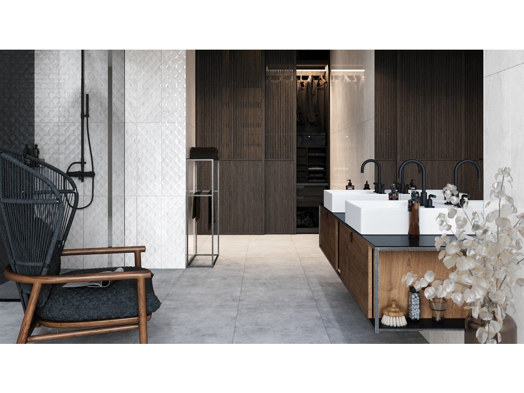 Jedná se o originální a zároveň univerzální kolekci obkladů. Dlaždice z kolekce Mix Slate mají lesklý povrch. Jedna základní dlaždice je hladká a stylizovaná do betonu, zatímco druhá nástěnná dlaždice má strukturu připomínající rybí šupiny. Texturované dlaždice odrážejí světlo z různých úhlů a dodávají aranžmá dynamiku a hloubku. Trojrozměrný tvar a univerzální šedá barva betonu vytvářejí moderní design interiéru. Kolekci Mix Slate Bianca doplňuje černá mozaika ve tvaru rybích šupin a dva dekory.