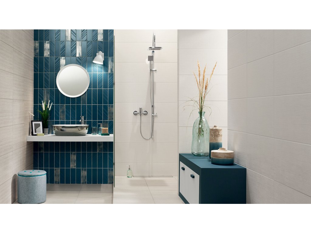 Obklad TUBADZIN v modré barvě o rozměrech 8x24 cm a tloušťce 0,7 cm má matný povrch. Vhodný pro použití na stěnách, balení obsahuje 0,7 m2.