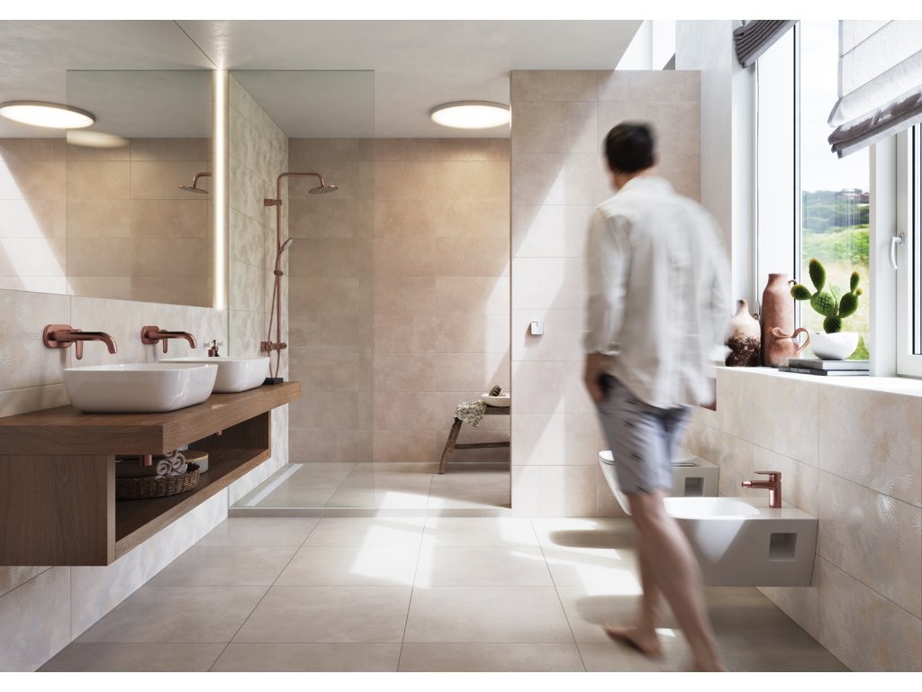 Jednoduchost a čistota charakterizuje nerektifikované obkládačky série Lampea ve formátu 30 x 60 cm imitující stěrku v tlumené jemné barevnosti. Na dotek velmi příjemný hladký, matný povrch v neutrálních barvách béžové, šedé a slonové kosti. V identických barvách doplňují základní obkládačky dekorace s listy s jemným třpytivým reliéfem. Za tím stojí technologie DryFix, která vytváří 3D strukturu a efekt, se kterým se dá pracovat opticky ve velké ploše, pruzích i kusově. Dekorace v kombinaci s obkládačkou se staly základem i pro řezanou mozaiku 5 x 5 cm pro zpestření i funkční detaily v koupelnách. Doporučujeme kombinační dlaždice Extra ve formátech 45 x 45 a 60 x 60 cm.