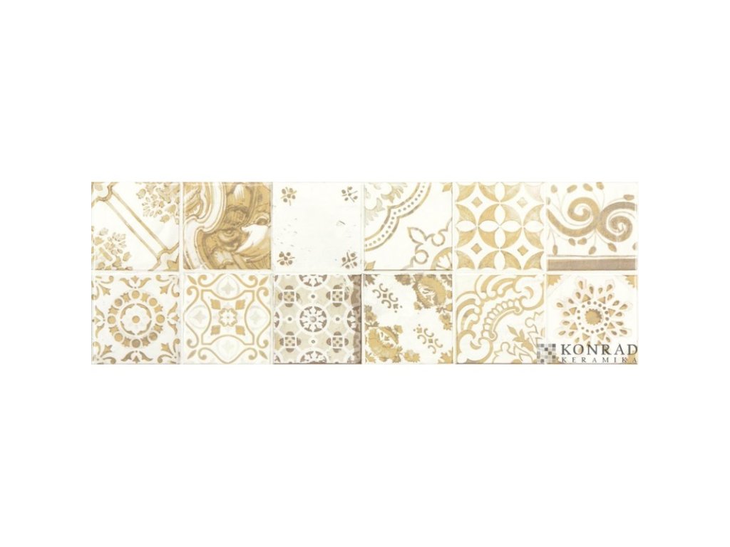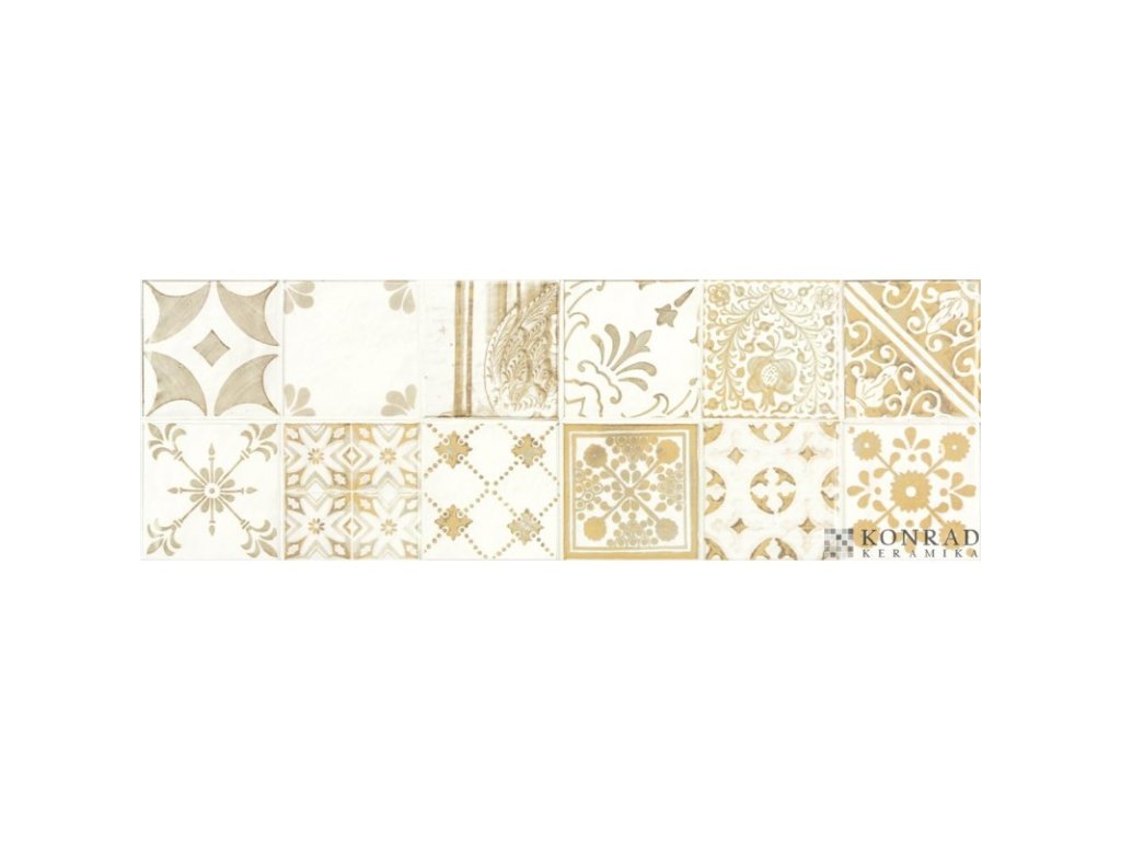 Obkládačka vytváří na první pohled iluzi klasické mozaiky, nicméně se jedná o celoplošnou dekoraci 20 x 60 cm ideální pro obkládání kuchyňských prostorů. Majolikové dekorace 20 x 60 cm tvoří vždy 12 stylových majolikových vzorů (10 x 10 cm), které se záměrně neopakují. Na podlahu se nabízí dlaždice Via, Board či Faro.